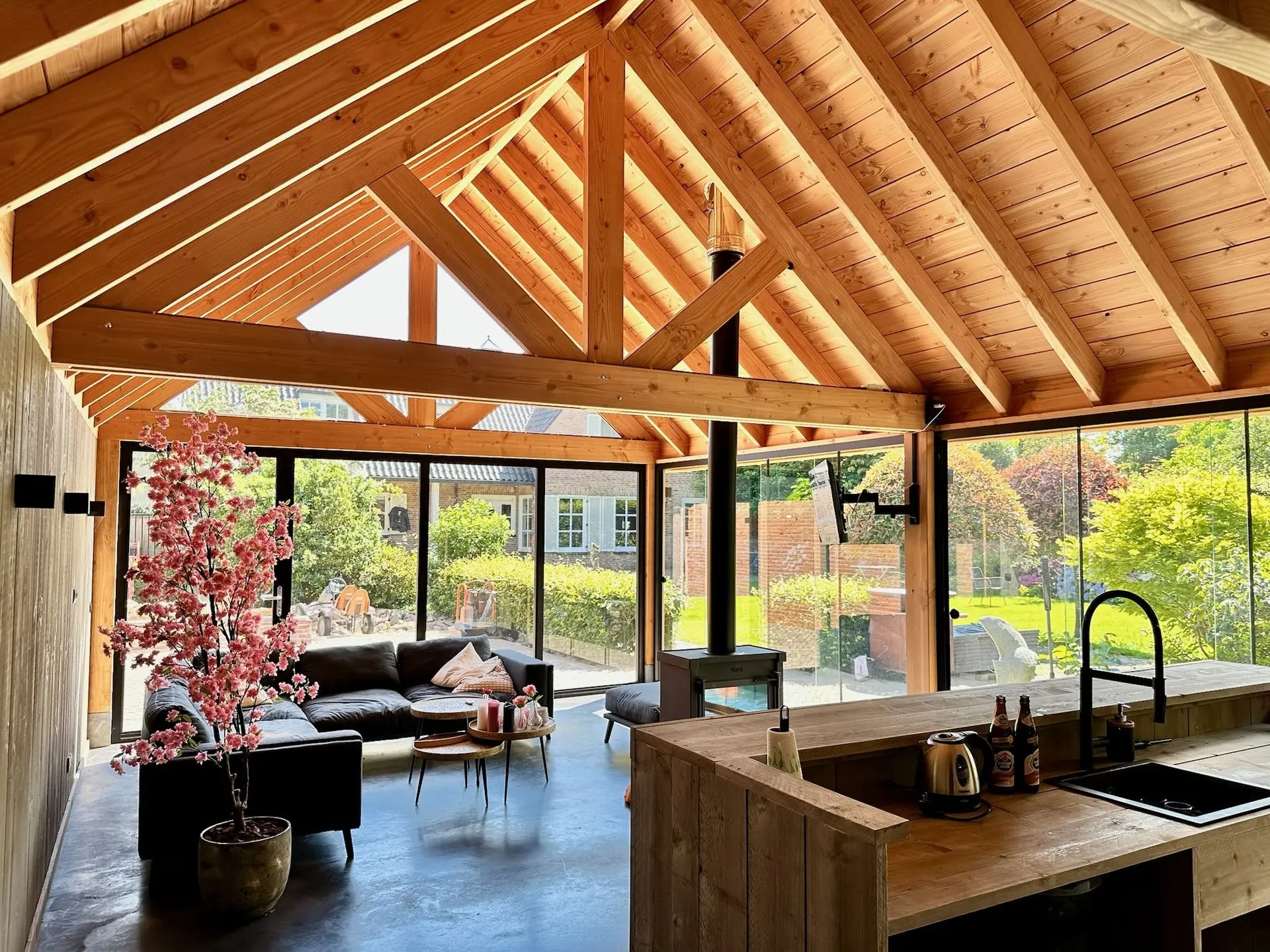 Een tuinkamer geeft je tuin net dat beetje extra. Het is een fijne plek om het hele jaar door te zitten: droog als het regent, beschut als het waait en lekker licht door de grote glaspartijen. Wij bouwen tuinkamers die degelijk zijn, praktisch in gebruik en passen bij de stijl van jouw huis en tuin. Gewoon een mooie, duurzame oplossing waar je elke dag plezier van hebt.