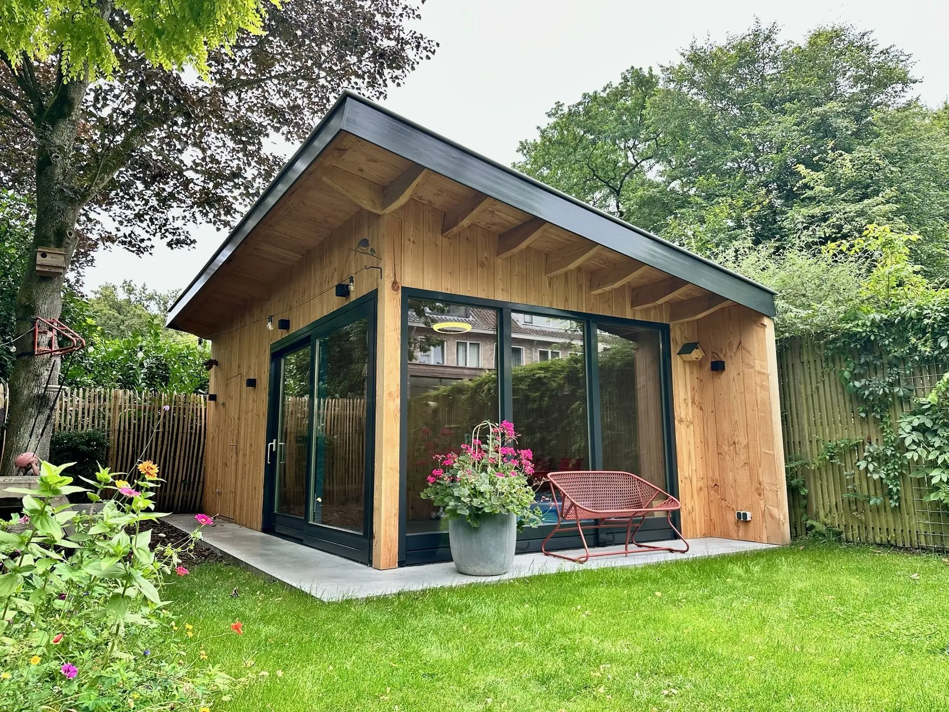 Een tuinkamer bouwen is voor ons meer dan hout en schroeven. Het begint met jouw ideeën, wensen en stijl. We luisteren, denken mee en maken samen een ontwerp dat echt bij je past.